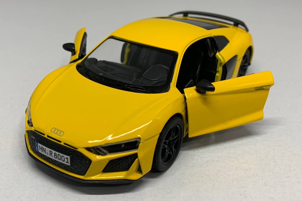آئودی R8 برند کینسمارت مقیاس 1:36 به طول 12 سانتی متر این ماشین تمام فلز با رنگ و متریال درجه 1 است. امکانات: 2 درب بازشو عقبکش
