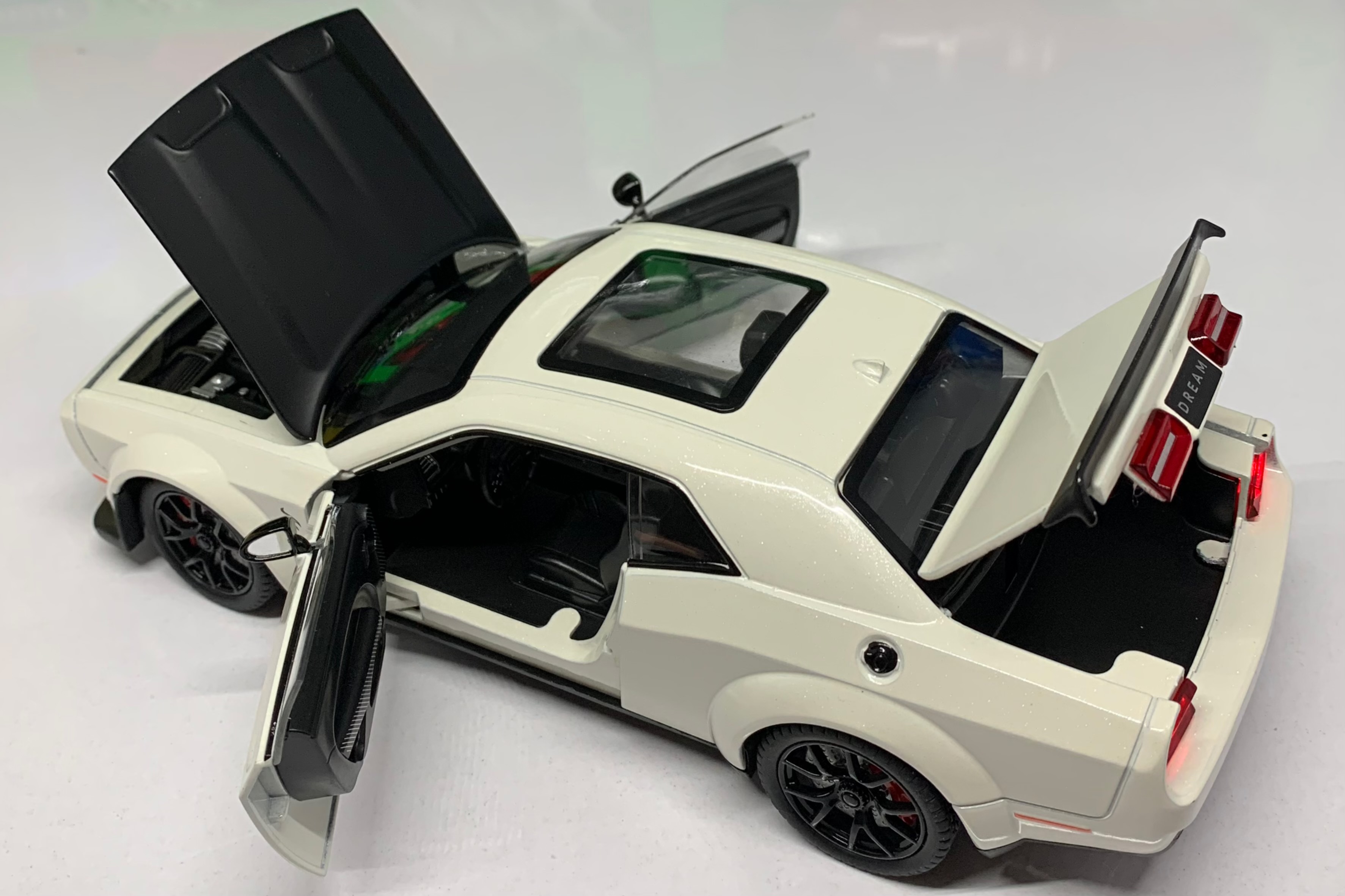 موزیکال، چراغ دار، عقبکش، دارای سنسور باز شدن درب ها، دارای دکمه زیر ماشین برای باز شدن کاپوت